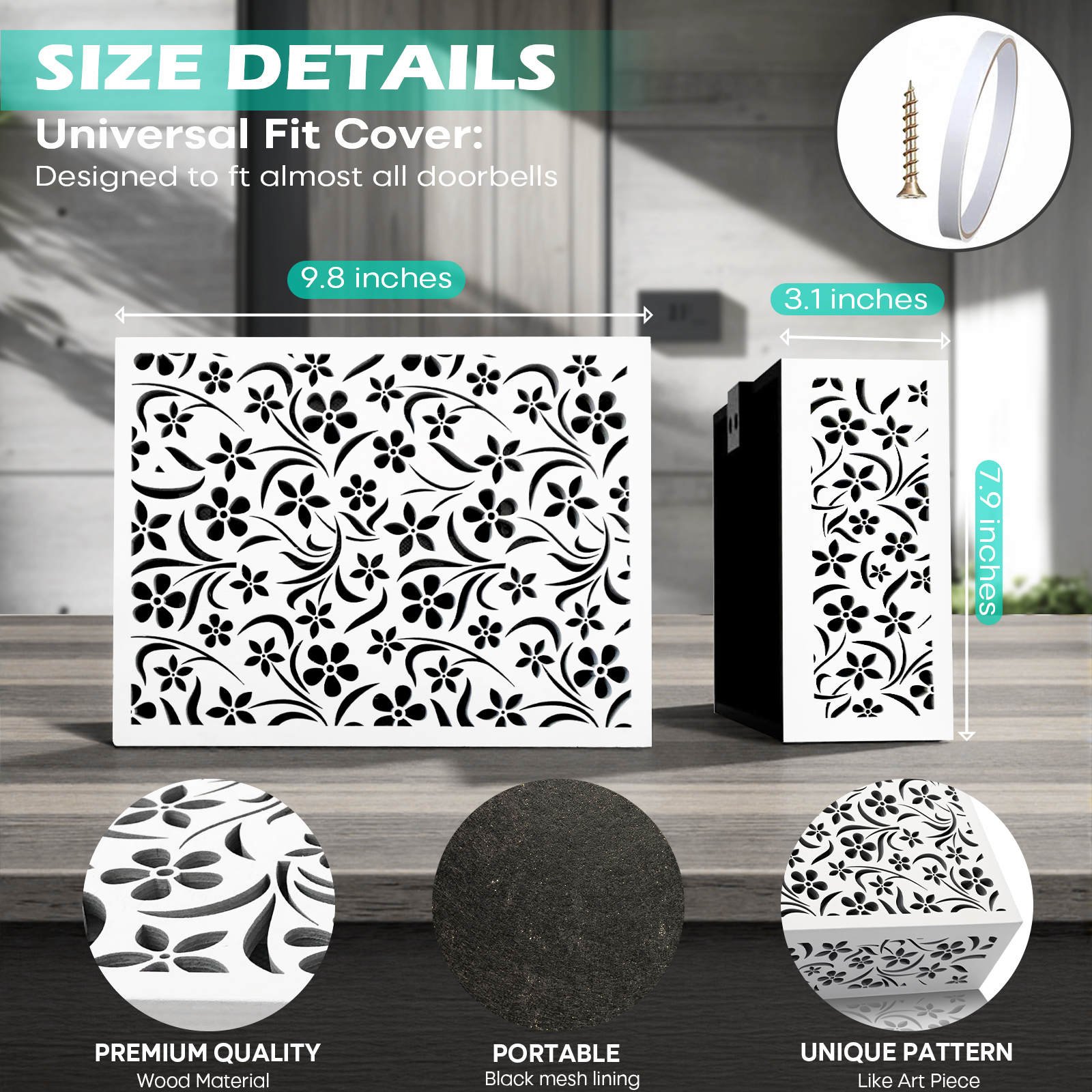 • Covers door chime boxes completely