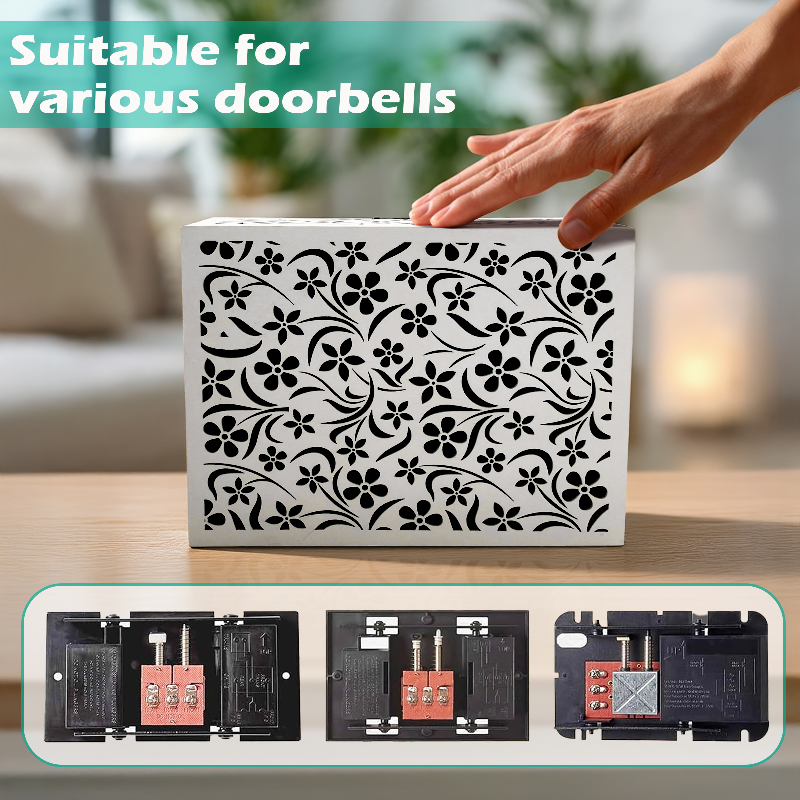 Decorative doorbell cover box – FLORAL LATTICE DESIGN Wood Chime Box 9.84” x 7.87” x 3.15”