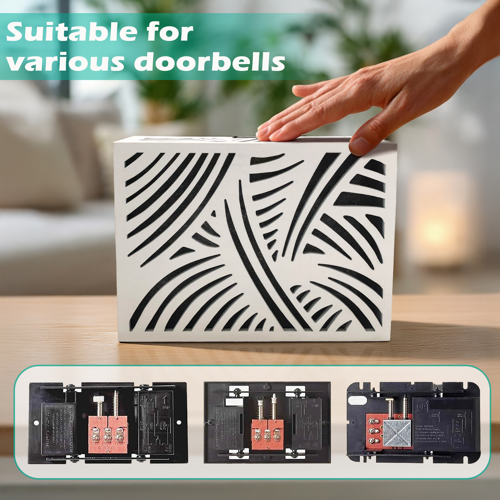 - Fits standard door chime boxes